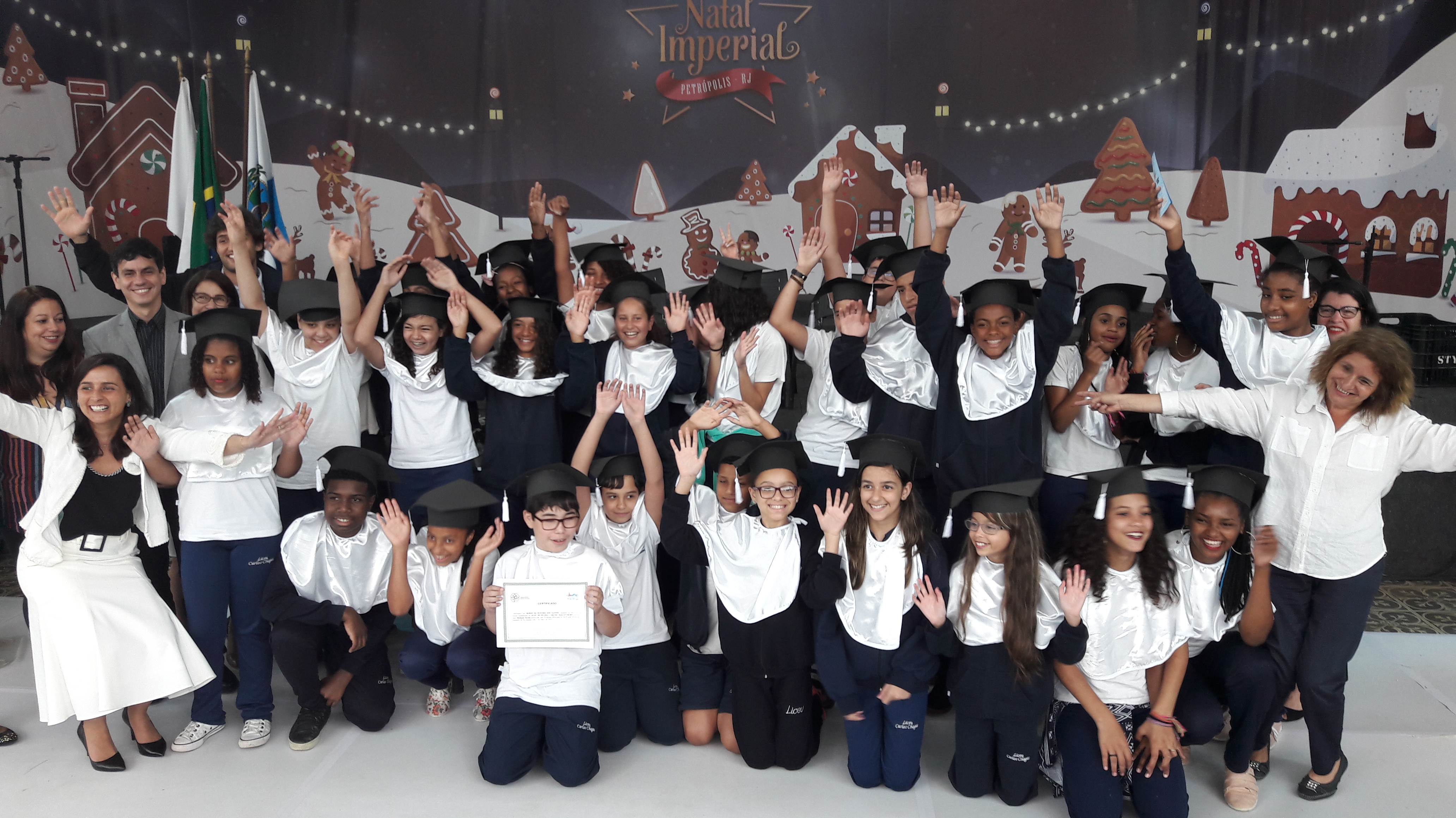 Nesta sexta-feira (07.12) alunos de três escolas da rede municipal de ensino participaram no Palácio de Cristal, da formatura da primeira turma de mediadores escolares de Petrópolis. A ação faz parte do Programa Municipal de Pacificação Restaurativa Petrópolis da Paz em parceria com a Secretaria de Educação, desde 2017, após uma iniciativa do prefeito Bernardo Rossi, através da Lei n° 7.532.