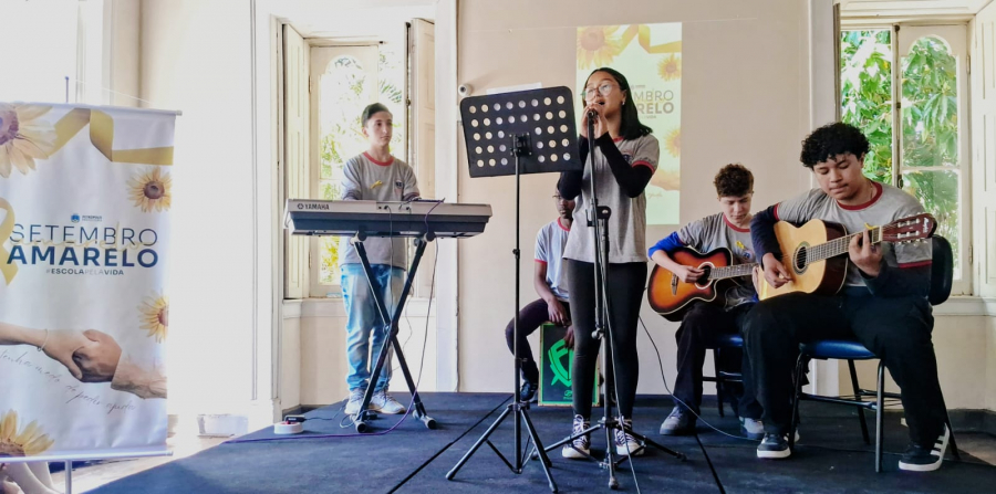 A Prefeitura promoveu, na segunda e terça-feira (29 e 30/09), a Mostra de Talentos com estudantes do segundo segmento do Ensino Fundamental das escolas municipais. O evento teve como objetivo valorizar a vida e estimular a expressão artística dos jovens em sintonia com o Setembro Amarelo - campanha de prevenção ao suicídio.