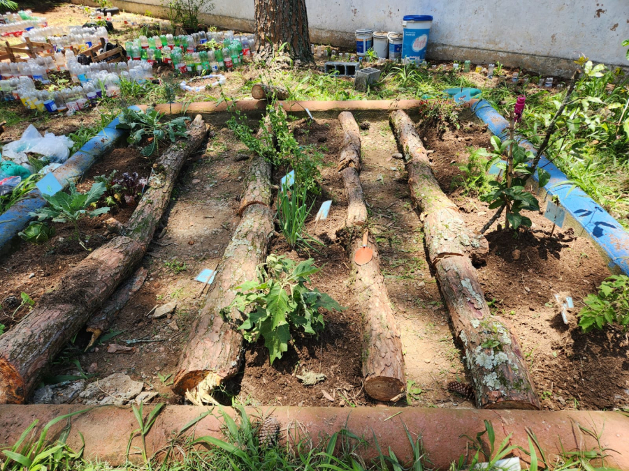 Projeto transforma material de poda em áreas de convivência, leitura e plantio dentro do ambiente escolar