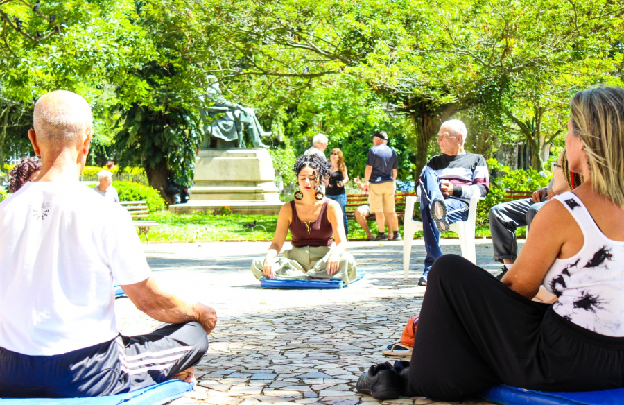 A Praça Dom Pedro, no Centro, ficou movimentada nesta quinta-feira (29/01) com uma ação da campanha Janeiro Branco, um movimento de conscientização sobre a importância de cuidar da saúde mental. Profissionais de saúde atuaram no acolhimento da população, oferecendo atividades de bem-estar, reiki, yoga, orientação nutricional e aferição de pressão arterial e glicemia. Além disso, equipes dos centros de Atenção Psicossocial (CAPS) ouviram e orientaram quem passava pelo local sobre o cuidado com a saúde mental.