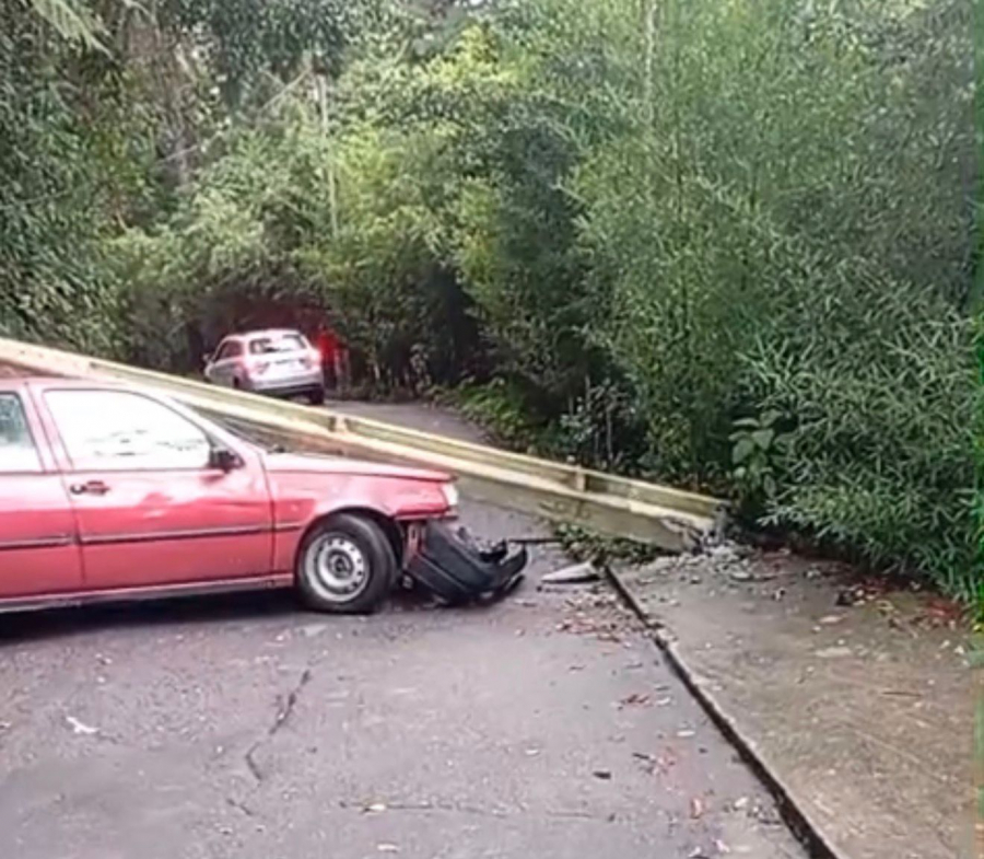 A via de acesso ao Moinho Preto está interditada para veículos por conta de um acidente que ocasionou a queda de um poste no local.